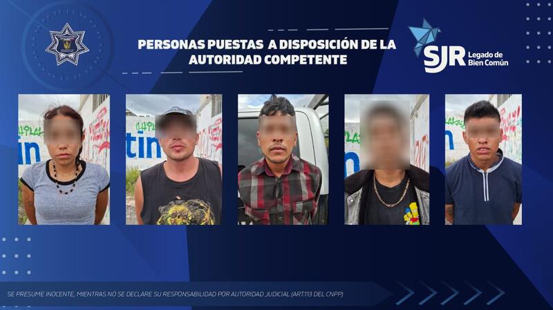 Elementos de la Secretaría de Seguridad Pública Municipal de San Juan del Río (SSPM-SJR) detuvieron a cuatro hombres y una mujer por su presunta participación en el delito de robo a comercio.